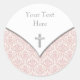 Tampas de batizar, damascos, cor-de-rosa, elegantes. Este belo adesivo de bestiagem cor-de-rosa e cruz prateada é facilmente personalizado para o seu evento, simplesmente escolhendo o botão "Personalizar!" para começar a adicionar os detalhes do seu evento, estilo da fonte, tamanho da fonte e cor e texto. Observe que todos os adesivos, cartões e designs de convite que você encontrará no Zazzle são gráficos impressos sem joias reais, arcos, levantados, gravados ou acrescentados peças ou peças. com