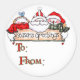 Neves adoráveis com papais noeis segurando estações saudando sinal. Decorre seus presentes com esta etiqueta de presente