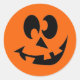 Um pequeno adesivo de forma redonda mostrado com um impressão gráfico de uma face de abóbora de Halloween. Personalize este item ou comprar como está.