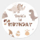 Adesivo Redondo Vinhetas de aniversário de dinossauro neutro e bon