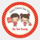 Bonita CNY Stickers em vermelho e ouro com menino e menina.