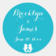 Azul-personalizado (azul-scuba) e adesivos de casamento de cavalo-marinho branco com texto personalizável