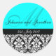Adesivo Redondo Vinhetas de Casamento de Turquesa Damasco Monogram
