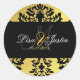 Fundo de folha de ouro falso com adesivos de casamento monograma damasco preto (seladores de envelopes), sotaque de ardósia/sotaque de grafite. Excelente para uso diário. Totalmente personalizável. Fontes e cores de fundo podem ser facilmente alteradas. Copyright © 2009 PixDezines.com e PixDezines em zazzle.com