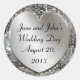 Mude facilmente para o seu próprio texto nestes elegantes adesivos de metal prateado com um coração de 3d sobre o fundo brilhante da sequência prateada. Mostra "Dia do Casamento de Jane e John" com a data em um roteiro elegante. Altere facilmente os nomes personalizados e a data. Também é bom para festas, ocasiões especiais e grandes eventos como um 25 de prata.