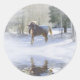 Criar etiquetas, cartões, embrulho decorativo e muito mais com estes belos adesivos de cavalo de férias. Apresentando uma appaloosa dançante na neve olhando para sua reflexão na água. Um item divertido e decorativo!