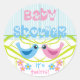 Chá de fraldas Envelope Selos Redondos. Convide sua família, parentes e amigos para sua festa de chá de fraldas e sele os envelopes com este bonitinho adesivo redondo com duas adoráveis pássaros azuis e rosa em um galho de limão com flores. As palavras Chá de fraldas são escritas em uma linda fonte rosa azul com corações em fundo listrado azul.