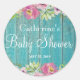 Este adesivo rústico de chá de fraldas de madeira azul floral redondo tem certeza de agradar aos seus hóspedes com seu charme country e uma elegância simples. Este design apresenta madeira de celeiro azul acentuada com flores cor-de-rosa macio e amarelas com uma tipografia popular. É um convite excelente para um chá de fraldas neutro em termos de gênero.