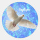 Este adesivo batismo é mostrado com uma impressão de foto da linda pomba. Personalize este item ou comprar como está. Imagem do stock