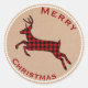 O papel de artesanato russo parece um adesivo de férias com uma silhueta de veados de xadrez de búfalo vermelha e preta, no meio. Feliz Natal em texto vermelho arquivado pode ser personalizado de acordo com suas necessidades. Os produtos de férias correspondentes estão disponíveis.