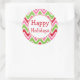 Um padrão brilhante cor-de-rosa, verde e vermelho em forma de fêmur decora estes adesivos Felizes de Feriados. Use estes adesivos para Natal, envelopes, cozinha, assar, presentes, artesanatos etc...O design é da arte original.