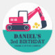 Cartoon de escavadora de construção para festa de aniversário infantil. Adequado para meninos que amam caminhões, escavadoras, guindastes, guindastes e mais grandes transportes. Etiquetas bonitas para crianças, festa de aniversário ou chá de panela. Personalizar o texto para qualquer ocasião com crianças.