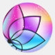 Adesivos redondos com flor brilhante vetor, cor-de-rosa, ciano e violeta, contra fundo multicolorido brilhante.