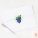 Os adesivos apresentam uma ilustração original de um bando de uvas roxas, impressas sobre fundo verde.