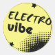 Crie um zumbido com esse design que diz eletrovibe. Esta design tem as palavras escritas a preto num fundo preto amarelo com algum preto no canto inferior direito. Este design de vibração eletrônica parece excelente nesses adesivos. Perfeito para si mesmo ou como presente