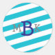 Adesivo Redondo Vinhetas de Monograma com Banda Laminada Aqua
