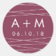 Personalize estas simples focas com as suas iniciais e data do casamento para uma forma chic de terminar os seus convites, favores e muito mais. Design apresenta uma inscrição branca limpa num fundo de mirtilos profundos, atravessado por linhas geométricas brancas. Concebido para corresponder à nossa coleção de convites de casamento de Linhagem em Marsala.