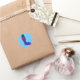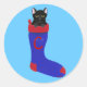 Pintura de um gato preto fofo em um estoque de Natal de vermelho e azul, como autocolantes de monograma. Personalize facilmente a letra no formulário do modelo.