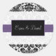 Adesivo Redondo Vinhetas de monograma roxo damask