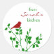 Esses adesivos bonitos e modernos apresentam um pássaro vermelho em um galho verde e o nome de sua escolha. Perfeito para anexar a produtos cozidos de Natal e outros presentes de comida de férias. Faz um presente excelente para aqueles que amam assar e fazem produtos enlatados, etc.