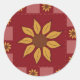Um grande girassol amarelo no meio de um quadrado vermelho profundo está no centro da design neste adesivo. É sobre um fundo composto por versões menores do mesmo quadrado girassol alternando com tom em quadrados de xadrez rosa-avermelhados. A colcha é "costura" junto com fio vermelho e tem um aspecto marrom, envelhecido. Da minha imagem original criada digitalmente.