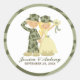 Estes adesivos de casamento totalmente personalizáveis apresentam uma ilustração caprichosa de um soldado e sua noiva. Design JW