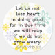 Vinhetas com Galatianos do verso das Escrituras 6:9. Não devemos perder de coração a fazer o bem, pois, em devido tempo, colheremos se não nos cansarmos.