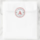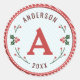Vintage desenhou autocolantes monogramas de Natal. Projetado com cores vermelhas e verdes contra um fundo listrado diagonal azul claro. Cercado por um holly bem projetado. Personalize com seu nome, inicial e ano.