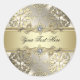 Etiquetas esbeltas e damascos dourados. Este belo adesivo preto e dourado é facilmente personalizado para o seu evento adicionando detalhes do evento, estilo de fonte, tamanho de fonte e cor e texto.