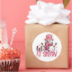 Bonito viciado em Natal, Snowman, com um chapéu cor-de-rosa e cachecol. As palavras "deixe nevar"