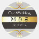 Adesivo Redondo Vinhetas Monograma de Casamento - Cinzas e Dourada