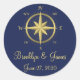 Etiquetas de casamento náuticas azuis com bússola dourada e texto personalizável