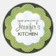Personalize suas conservas caseiras, doces cozidos e outros doces com esses adesivos redondos que são fáceis de personalizar com seu nome. Design é uma forma floral verde decorada com pequenas bolinhas. Excelente para picles caseiros!