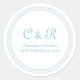 Autocolantes redondos, simples e elegantes, com uma borda de círculo geométrico em azul. Esta design de casamento chic e moderna é perfeita para dar o tom para um casamento simples e sofisticado. Fácil de personalizar, basta adicionar os detalhes do casamento nos campos de texto fornecidos. Clique em "Personalizar" para encontrar mais opções de personalização.
