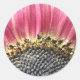 Esta bela folha de adesivos redondos apresenta uma fotografia detalhada e detalhada de um girassol rosa bonito. A fotografia foi tirada com macrofotografia e mostra as pétalas cor-de-rosa vibrantes e o detalhe intrincado dessa bela flor.