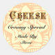 Vintor de queijo personalizado com letras góticas e arte de uma flor de corte de madeira em amarelo cremoso e laranja.