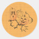 O Vintage Halloween Sticker desenhado à mão com abóboras e folhas bonitas sobre fundo laranja.