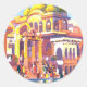 Vintage trabalho de arte de uma cena da Índia. Colorido com laranja, chalé e ouro.