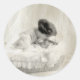 Adesivo Redondo Vintage Mãe beijando bebê em Bassinet