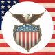 Adesivo Redondo Vintage Patriotismo, Águia Orgulhosa sobre Bandeir