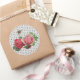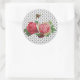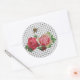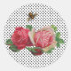 Rosas de vindima e abelha de pairar sobre fundo bolinhas preto-e-branco.