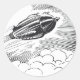 Adesivo Redondo Vintage Science Ficeship Rocket in Clouds