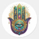 Adesivo Redondo Violet Green Gold Petals Hamsa Turquoise Third Eye