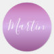 Adesivo Redondo Violeta Roxa e Script Branco Personalizado