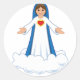 Este adesivo apresenta a Virgem Maria sorridente numa nuvem. Excelente para crianças como recompensas, e personalizável também! Adicione o nome de uma criança à nuvem para um toque especial. Arte original de Chris Alcott.