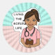 Engraçado com enfermeira hispânica, médico, assistente médico, cuidadora, animadora da CNA, mulher étnica de cartoon rosa. Vivendo a vida esfregada.