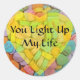 Produtos divertidos com o fundo dos corações namorados tradicionais com uma camada amarela em forma de coração e texto personalizável lendo "Você Acende Minha Vida."