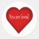 Um coração gráfico do artista/designer Charmaine Paulson com o texto "Você é amado" em um adesivo.