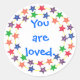 Adesivo Redondo Você é amado, colorido de estrelas.