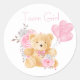 Votem a equipe cor-de-rosa ou uma garota de equipe numa festa reveladora de gênero com este adesivo! Ilustração de um Urso de ursinho rosa com aquarelas, segurando em balões rosa. O texto diz "garota da equipe".